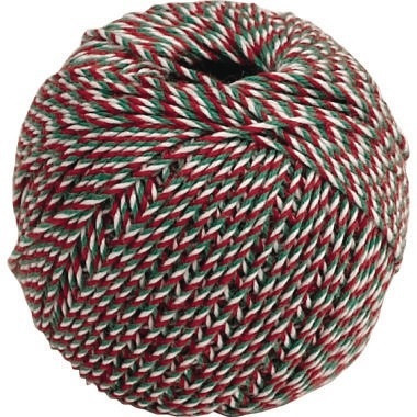 Notariatsgarn kardiert, ringegesponnen, gefärbt, gezwirnt. Garnstärke: Nm 34 (dtex 295). Einzelfäden 3 x 3. Festigkeit 50 N (+/- 5 %). · Material: 100 % Baumwolle · Ausführung der Konfektionsart: Knäuel · Dehnung: 9 % · Farbe: grün/weiß/rot · Länge: 36 m · Masse (Gewicht): 10 g