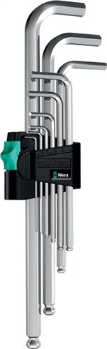 mit Kugelköpfen · lang · mit Hex-Plus-Profil (verhindert das Runddrehen von Innensechskantschrauben) · CV-Stahl · verchromt · langer Schenkel mit Kugelkopf ermöglicht das Schrauben bis zu einem Winkel von 20° · kurzer Schenkel gefast Der mit einem Schiebeschalter zu öffnende Winkelschlüsselclip sorgt für dauerhafte Klemmung der Winkelschlüssel und bietet einen schnellen und sicheren Zugriff