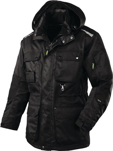 EN 343 Kl. 3/3 · 100 % Polyester · atmungsaktives, wind- und wasserdichtes Ripp-Stopp-Material · abriebfeste Oxford-Nylon-Besätze an Schultern, Manschetten sowie Brusttaschen · Ellenbogen mit robusten CORDURA®-Besätzen verstärkt · wärmende Steppfutter-Kombination mit perforierter Aluminium-Beschichtung, Reflexprint auf Front und Rücken · abzippbare, gefütterte Kapuze · Ärmel-Manschetten mit Klettriegel · Service-Reißverschluss im Futter für einfache Bedruckung und Bestickung · Wassersäule: ca. 10000 mm · Atmungsaktivität: ca. 5000 g/m²/24h