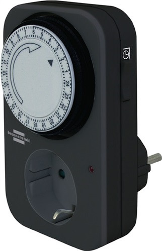 mechanisch · für den Innenbereich · 96 Schaltzeiten pro Tag · kleinster Schaltabstand 15 Minuten · manuelles Einschalten · mit integriertem Kinderschutz · kompakte Bauform · Schaltleistung max. 3650 W · Weitere technische Eigenschaften Breite: 60mm • Tiefe: 70mm • Höhe: 105mm
