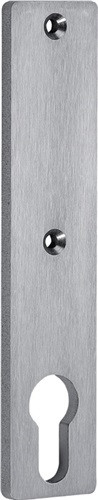Edelstahl rostfrei · kantige Form · 18 mm Führung · passend für alle Schlosskästen · Edelstahl rostfrei Schrauben werden mitgeliefert · Kurzschild mit 72 mm Entfernung PZ · Schraubenlochabstand 67 mm · Breite 32 mm · Höhe 156 mm · Tiefe 6 mm · blind ohne Drückerloch · Weitere technische Eigenschaften Schraublochabstand: 67mm • Ausführung: ohne Drückerloch