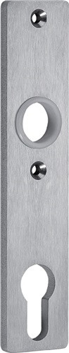 Edelstahl rostfrei · kantige Form · 18 mm Führung · passend für alle Schlosskästen · Edelstahl rostfrei Schrauben werden mitgeliefert · Kurzschild mit 72 mm Entfernung PZ · Schraubenlochabstand 67 mm · Breite 32 mm · Höhe 156 mm · Tiefe 6 mm · inkl. Drückerrosetten für Drücker Ø 16 mm und Ø 18 mm · Weitere technische Eigenschaften Schraublochabstand: 67mm